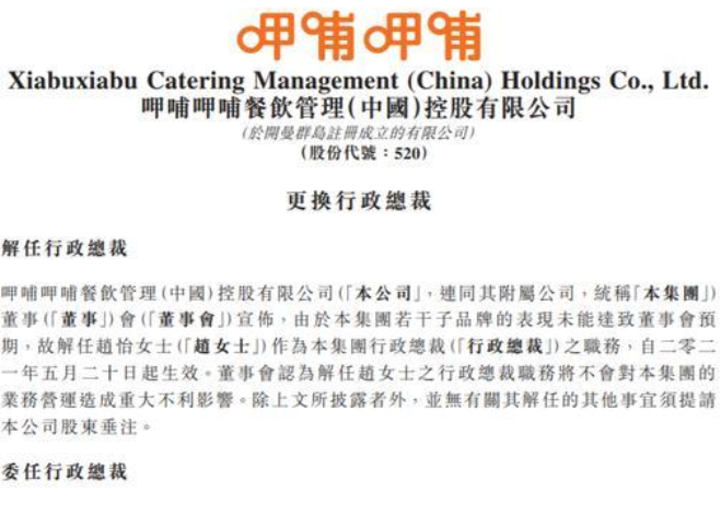 资本催动下,为了给上市做铺垫,他还引进多位业内大咖,比如刚被解聘的美女行政总裁赵怡,她就是在2012年加入的呷哺呷哺,时任首席财务官。